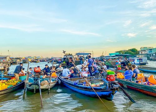 05h30: Trải nghiệm một trong những chợ nổi sầm uất nhất miền Tây. Quý khách sẽ thấy cảnh mua bán tấp nập trên sông, thưởng thức cà phê, hủ tiếu nổi.