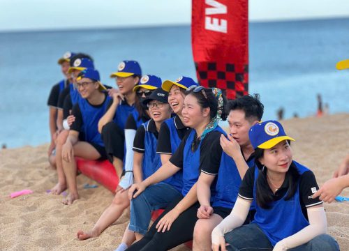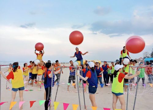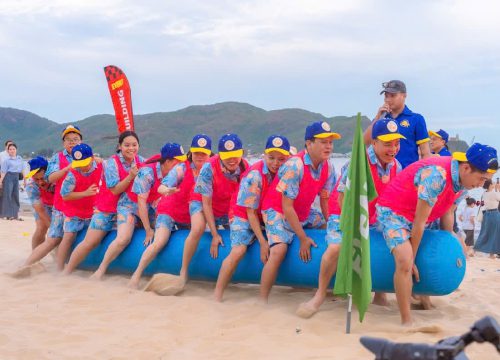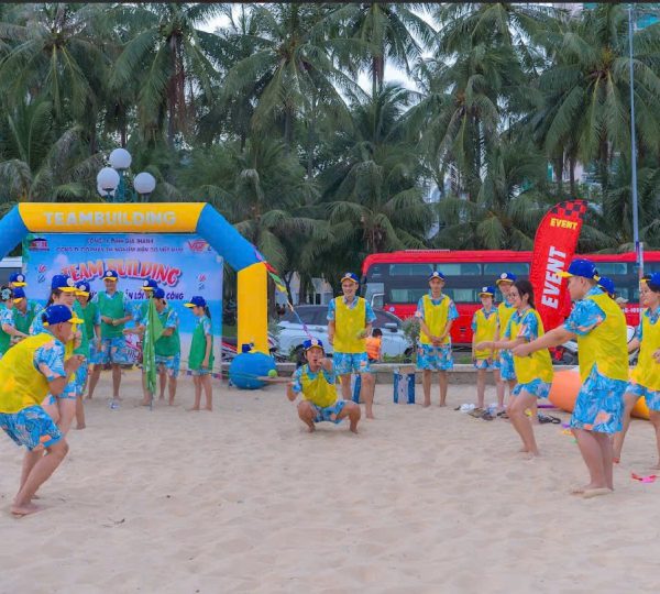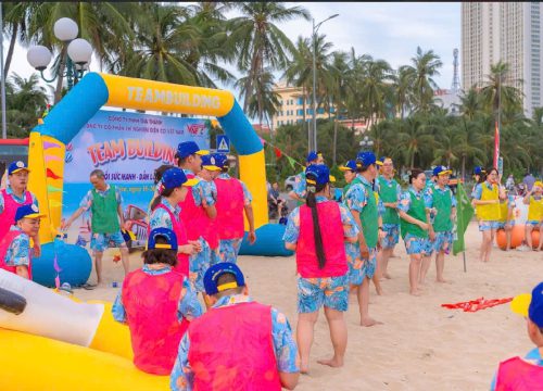 15h45: Di chuyển đến khu vực bãi biển Vĩnh Hy. Bắt đầu chương trình Teambuilding chủ đề "Vượt Sóng Biển Đông". Các đội sẽ tham gia vào các trò chơi gắn kết, thử thách sự khéo léo và tinh thần đồng đội như: "Đưa nước về nguồn", "Bánh xe thần tốc", "Đoàn kết vượt biển"...